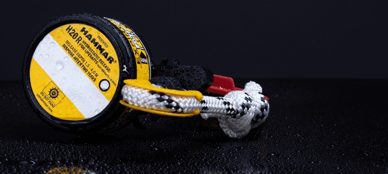 H20 R FOR RAFTS The H20 for Rafts combines a Release Unit, Strong Rope and a Weak Link. The Yellow top label indicates a release depth of 1.5-4 m as defined by SOLAS. The Hammar H20 SOLAS model is designed for liferafts from 6 up to 150 persons